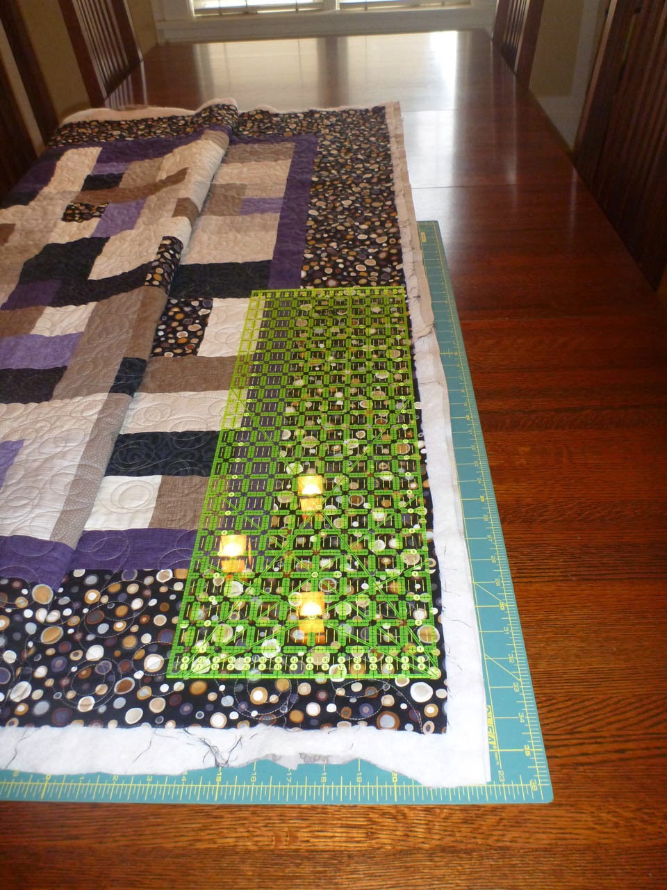 Phil picked up two of Janet's quilts from Arlene, Longarm Quilt Lady and she loves them! Now it's time to go solo in the squaring up department, which Janet has never done on her own. With the exception of one quilt, Karen